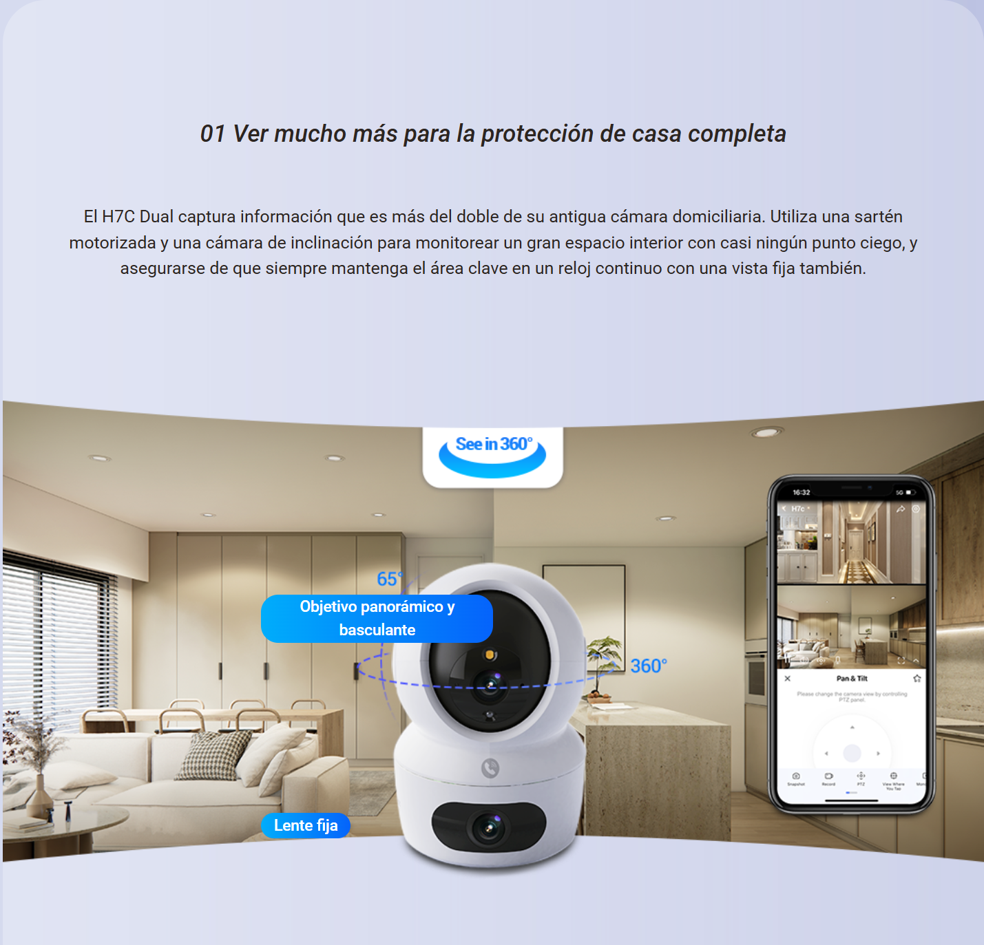 Cámara PT / Doble Lente (4 MP + 4MP) / 4 Megapíxel / Wi-Fi / IA Detección Humana / Visión Nocturna a Color / Audio Bidireccional / Doble Banda 2.4 / 5GHz / WiFi 6 / Uso en Interior / Vision Nocturna Inteligente (Color 27/4)
